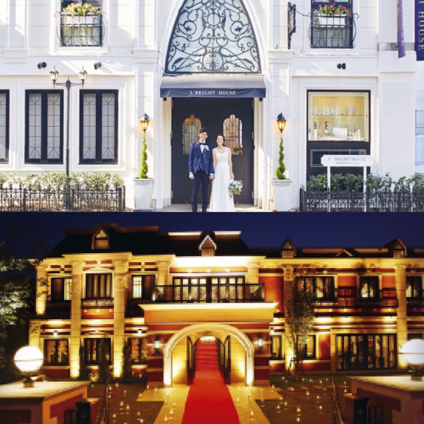 浜松町駅から徒歩1分の好アクセスな白亜の邸宅「L’BrighteHouse」、渋谷と代官山のロケーションが人気のクラシカルな貴族邸宅「鳳鳴館」。ともに高貴なパーティーで至高のひと時を提供します。